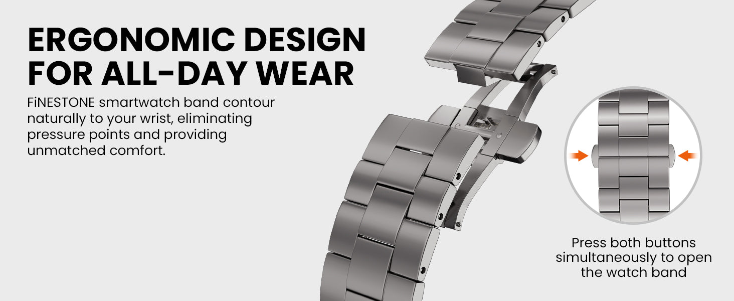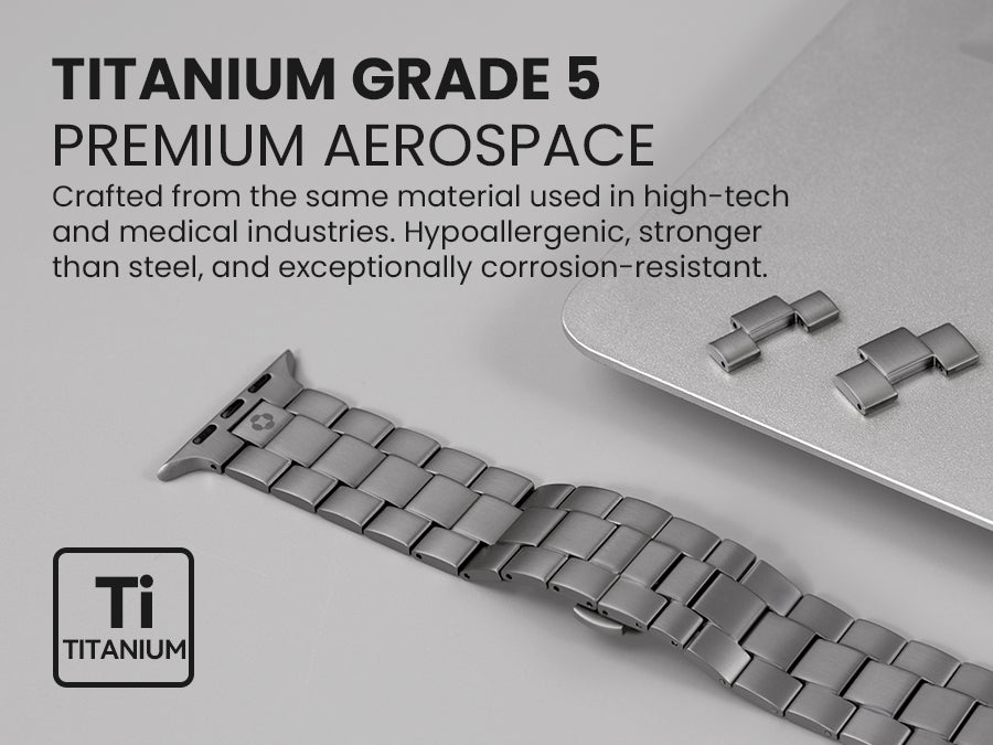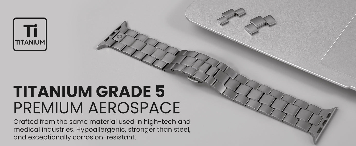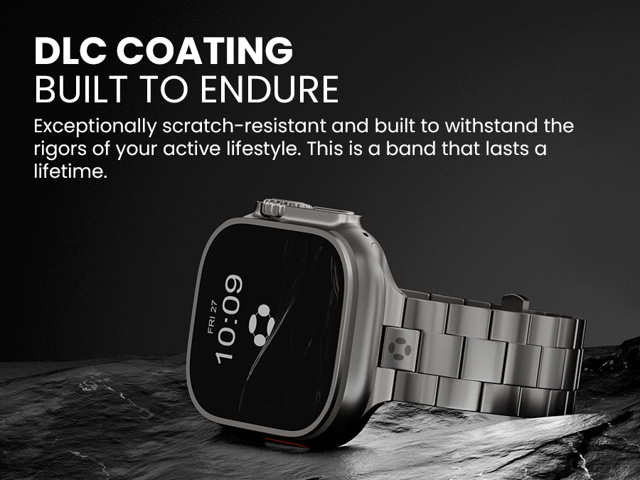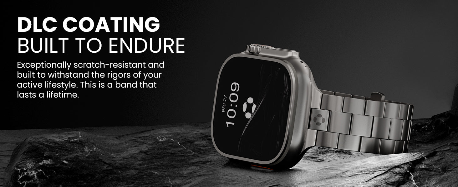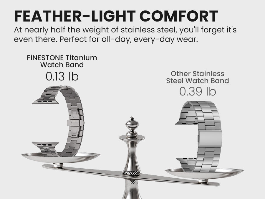 - Exquisite Design with Premium Titanium Material: The FiNESTONE Titanium Apple Watch band is crafted from premium titanium. Diamond-like Carbon (DLC) coating for high corrosion & scratch resistance. At the same time, it is Waterproof and sweatproof, smooth hand feeling, which fits the skin without itching. The lightweight yet sturdy material adds a touch of sophistication and elegance to your wrist.