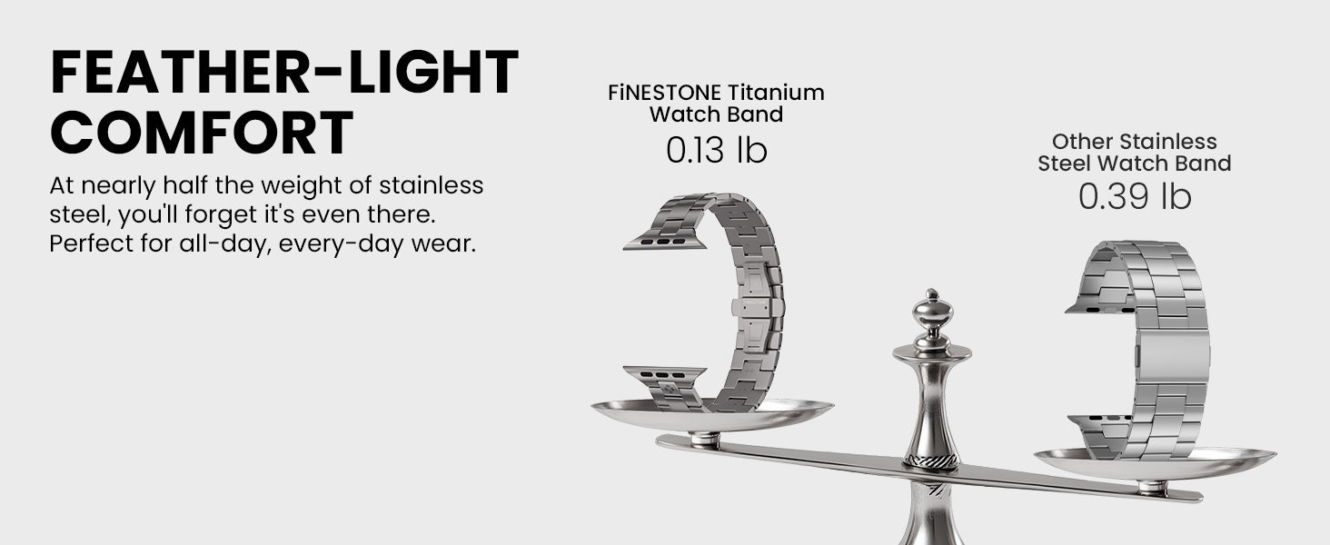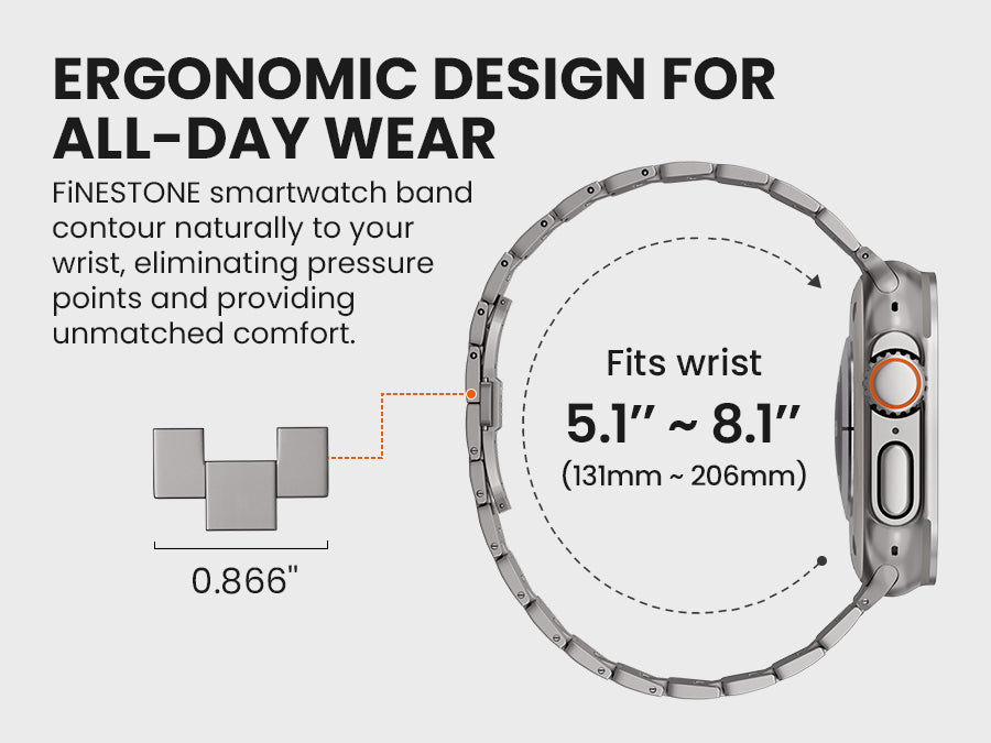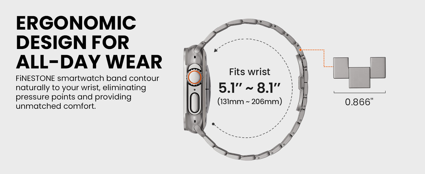- Perfect Blend of Comfort and Durability: Experience unparalleled comfort with the FiNESTONE Titanium Band's unique design. It pairs perfectly with the Apple Watch ULTRA 3, ULTRA 2 & ULTRA 49mm. There's no gap between the strap connector and the watch face. The titanium material ensures not just a lightweight feel but also outstanding durability, making it suitable for extended wear in various lifestyle situations.
