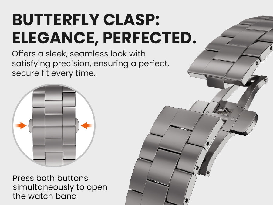 - Safer Folding Buckle Design: The Titanium Band features a secure folding - buckle design with double buttons. This ensures easy and safe fastening of the strap, providing enhanced protection for your watch. The smooth edges of the band guarantee a comfortable fit, and its decorative appeal makes it a stylish focal point, adding a touch of panache to your overall look.